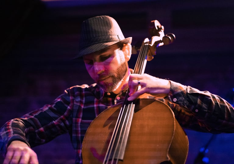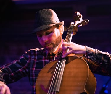 Dave has been playing music since grade 4 when he was forced to play cello by his loving and benevolent parents. Luckily for him, he loved it, and found his voice in the diverse and complex tones of the instrument. He became very active in cello competitions during his formative years, too much acclaim, which helped him polish his sound, before going on to tour with Kaj in their Dungeon & Dragons heavy metal group: The Void. Using the expressive tones of his cello in unconventional and unique ways. His father was a luthier and eventually he was given a stand up bass, and found a love and passion for expressing the deeper tones in life.